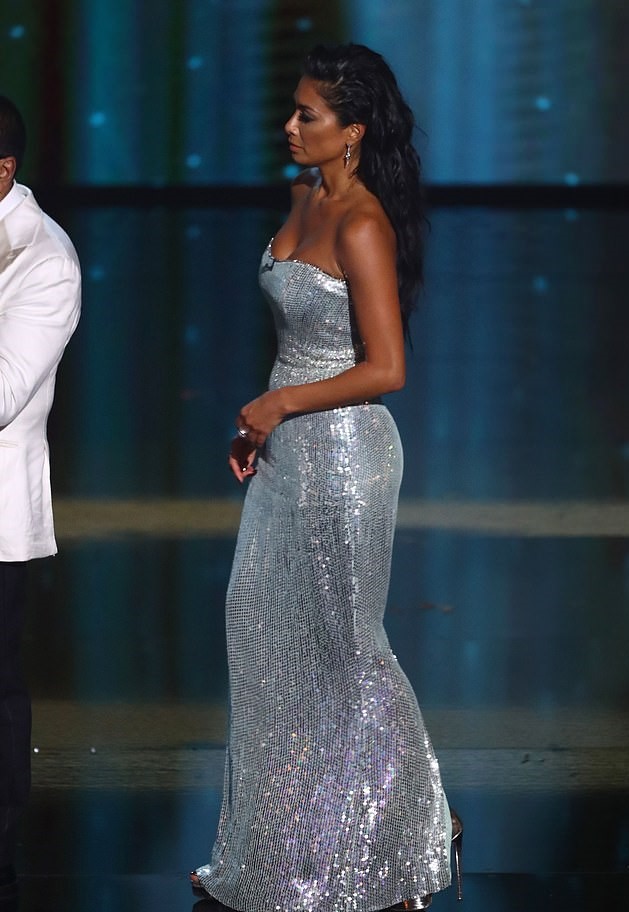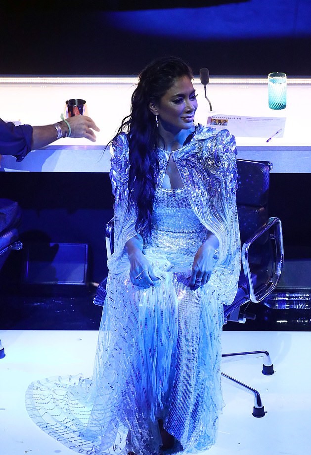 Тя се върна в The X Factor след двегодишно отсъствие. Никол Шерцингер прикова вниманието, като се появи с блестяща дълга рокля за дебютното шоу на живо на The X Factor: Celebrity.