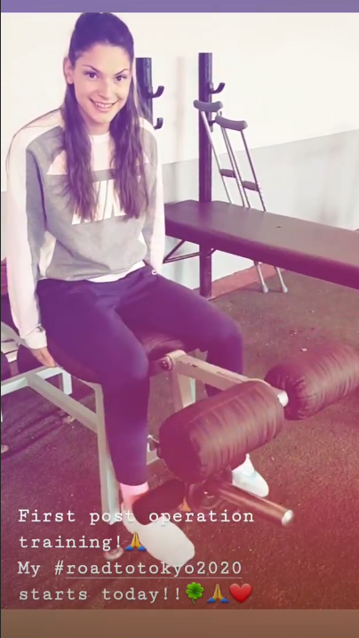 Габриела Петрова направи първата си тренировка след претърпяна операция за отстраняване на шипове на палеца. Националната ни състезателка в тройния скок се похвали с кратко видео от тренировъчната зала, което публикува в историята си в профила си в Instagram. Възпитаничката на Атанас Атанасов написа: “Първа тренировка след операцията. Пътят ми към Токио 2020 започва днес”.