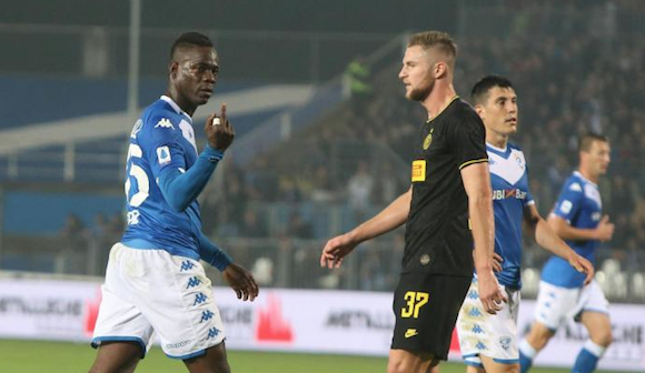 Бившият футболист на Интер Марио Балотели размаха среден пръст към запалянковците на миланския клуб по време на двубоя срещу неговия Бреша във вторник. Това беше в отговор на множеството обиди, които ултрасите отправиха към него. Тифозите на “нерадзурите” се чуват да викат “л*йно”, “кучи син” и “копеле”, с което успяха да го извадят от равновесие.