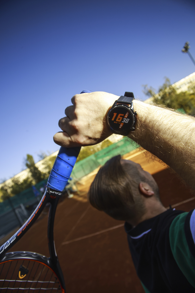 С Watch GT 2 играхме заедно тенис, друг мой любим спорт, срещу тежък съперник. След оспорваната среща ми беше полезно да разбера как точно се натоварвам като пулс, като в паузите между геймовете поглеждах сърдечния си ритъм и в реално време. След края видях и колко съм се движил по време на играта. За това се грижи GPS от последно поколение с помощта на три сателита. Часовникът никога не лъже, което не може да се каже за нас самите, защото заради странични фактори понякога ни се струва, че сме тренирали много здраво, но реално не е било така.