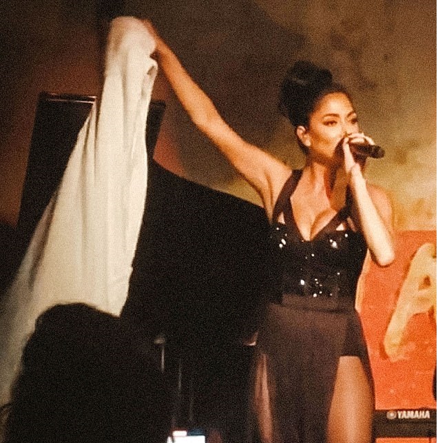 По време на концерта Никол смени два тоалет и ги съчета с дълги лачени черни ботуши, които подчертаха сексапила й. И двата тоалета разкриха перфектните й форми.