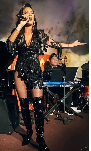 Тя пееше страстно с микрофона си, който беше поставен на стойка, преди да го извади, за да се движи по-свободно из малката сцена.