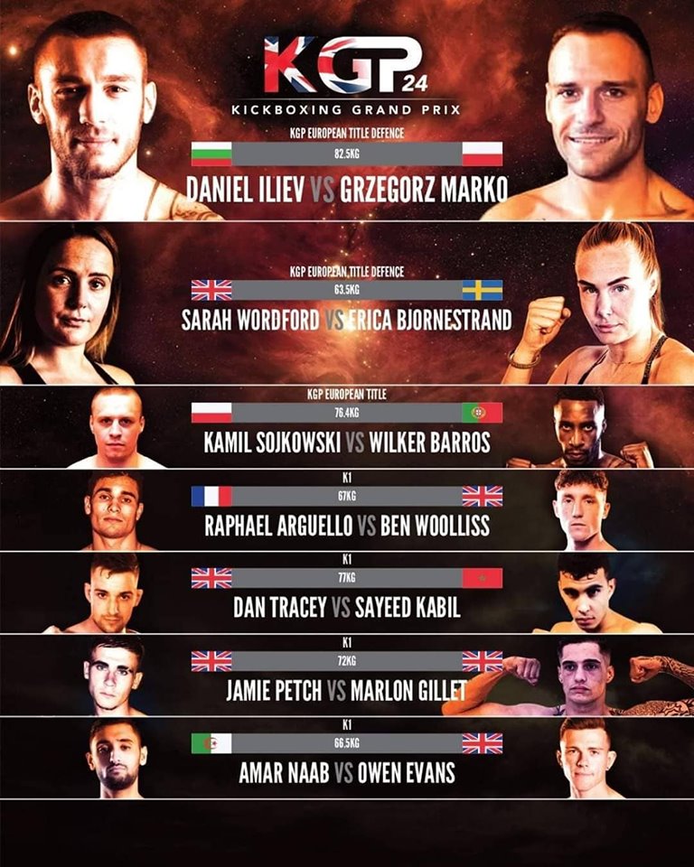 Битката за пояса ще е в пет рунда. Преди това има 7 срещи по кикбокс и още две защити на европески титли.