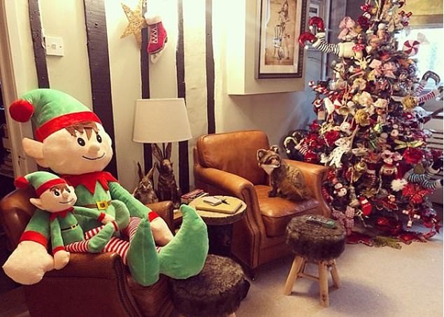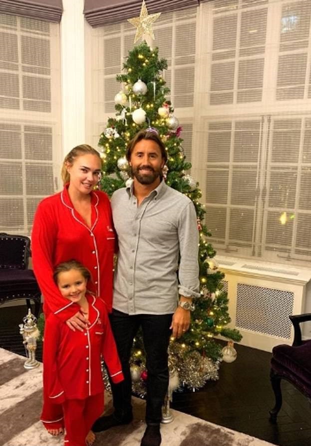 В поредица от снимки, които сподели в профила си в социалната мрежа Инстаграм, тя позира пред екстравагантното си коледно дърво, заедно със съпруга си Джей Рътланд и петгодишната им дъщеря София.