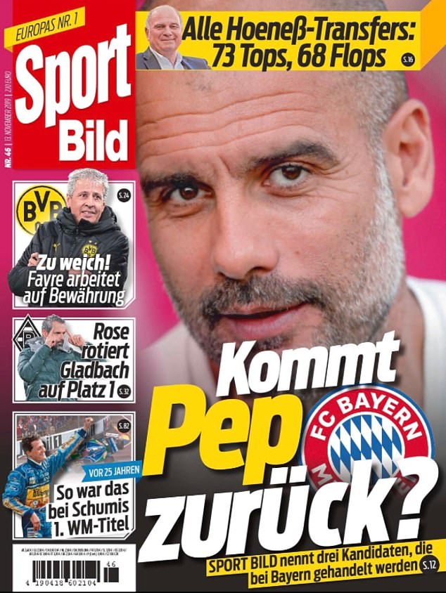Ръководството на Байерн (Мюнхен) има сензационни намерения да върне на треньорския пост Джосеп Гуардиола. Според "Билд" мениджърът на Манчестър Сити е на първо място в списъка от трима кандидати за наследници на Нико Ковач. Договорът на испанеца с "гражданите" изтича през 2021 година, но в Байерн се надяват Пеп да се завърне на "Алианц Арена" още през следващото лято - четири години, след като си тръгна от Бавария. Другите двама кандидати са Ерик тен Хаг и Томас Тухел.
