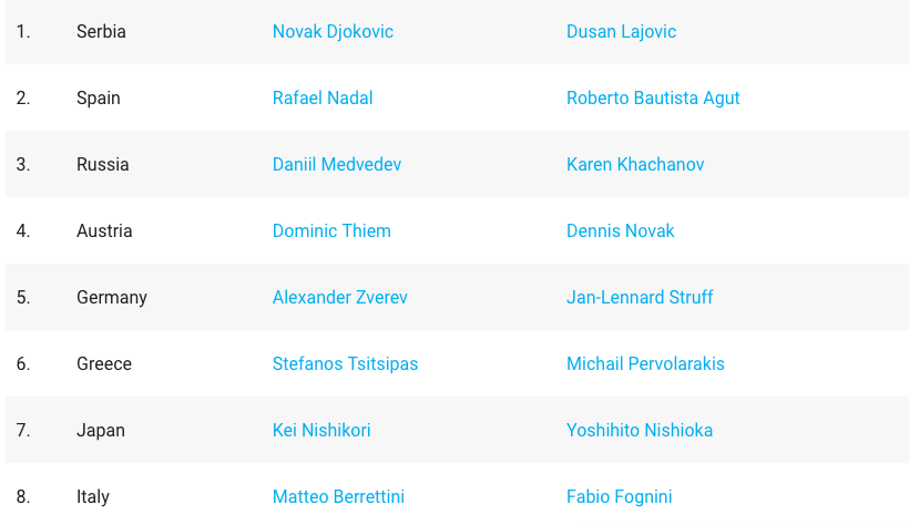 Всеки отбор ще се състои от до петима тенисисти, а всеки сблъсък – от два мача на сингъл и един на двойки. За да бъде в новата ранглиста, всяка страна трябва да разполага с поне двама тенисисти, имащи АТР ранкинг на сингъл и поне още един, който има такъв на сингъл или на двойки.