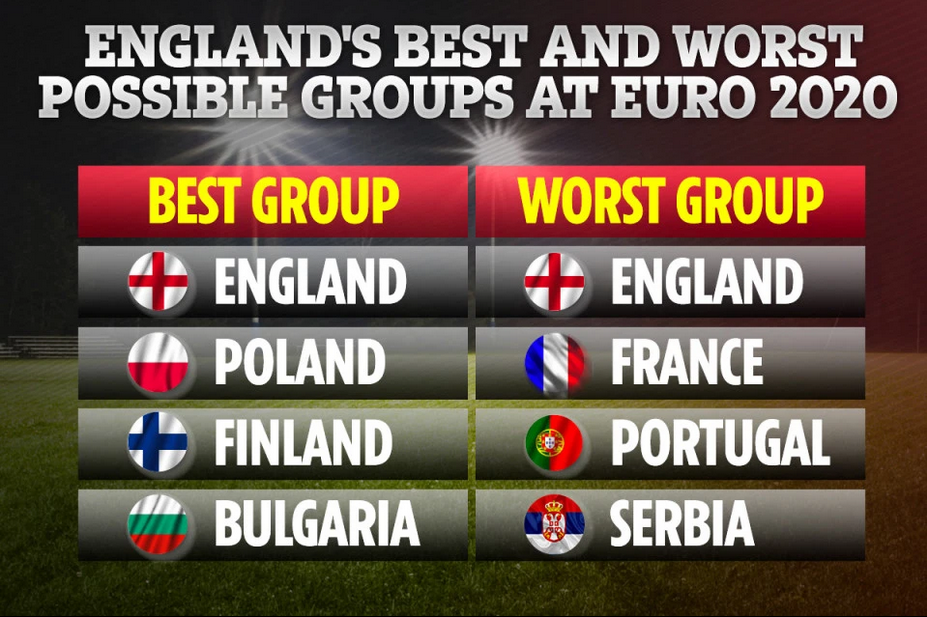 Въпреки отличните резултати, момчетата на Гарет Саутгейт могат да срещнат кошмарен жребий в групата на самите еврофинали, а именно да се изправят при определени обстоятелства срещу световния шампион Франция, защитаващият европейската си титла Португалия и Сърбия. Такова стечение на обстоятелствата е определено като “група на смъртта” от вестник “Сън”.