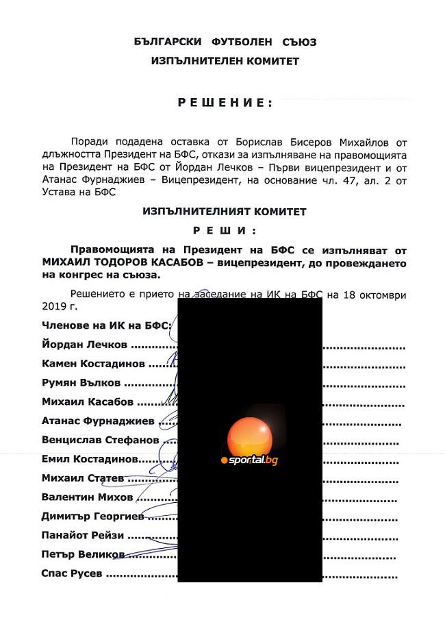 След разговора с Йордан Лечков се свързахме с БФС и поискахме стенограма от Изпълкома, на който Борислав Михайлов подаде оставка. Поискахме да видим и дневния ред на въпросния ИК. От Бояна получихме отговор, че БФС не е държавно ведомство и не е длъжен да публикува дневен ред и стенограми от събрания и т.н. Това можело да стане, ако такива бъдат поискани от държавни органи, имащи правомощията да го направят.