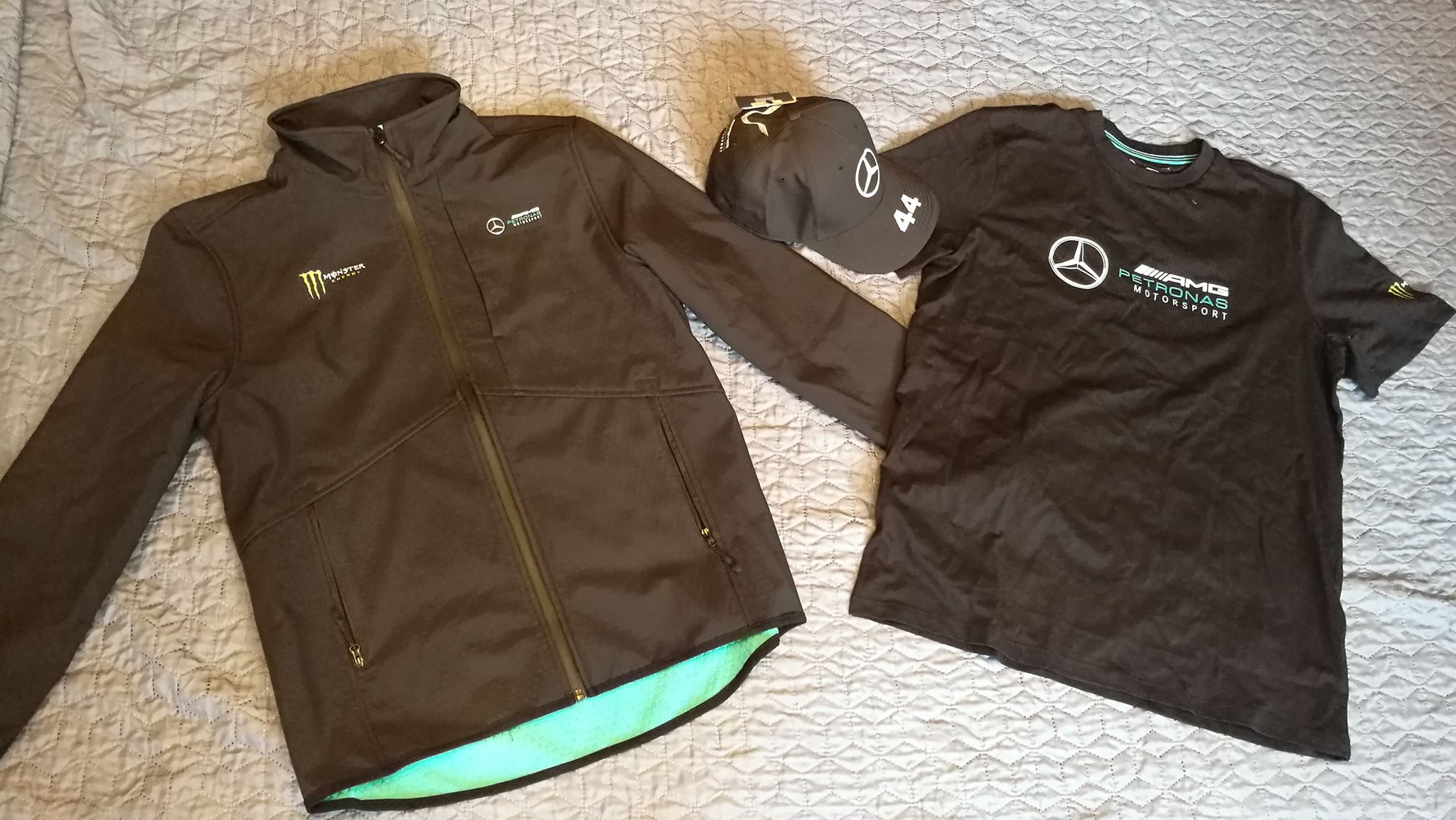 Награди: Трима щастливци получават официална екипировка на Люис Хамилтън от отбора на Мерцедес във Формула 1, състояща се от яке, тениска и шапка.