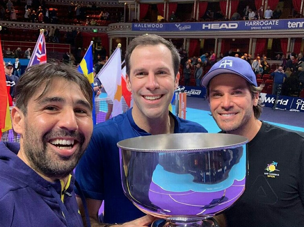 Родният футболен запалянко Кирил Евтимов продължи традицията си да подарява българско вино на известни личности. Този път Киро беше част от елитна компания от света на тениса. В "Роял Албърт Хол" в Лондон нашенецът дари с български еликсир някогашните звезди на световния тенис Тим Хенман и Марк Филипусис.