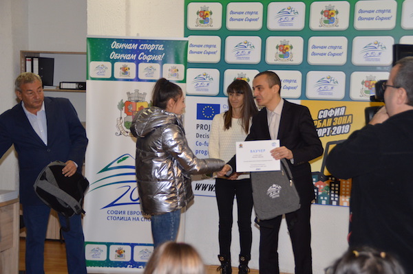 Учениците, завоювали високи постижения на международни първенства бяха наградени с ваучер на стойност 300 лева, а класиралите се на първо място в държавни първенства – с ваучер за 180 лв. Всички получиха и раничка с бранда на „София – европейска столица на спорта“.