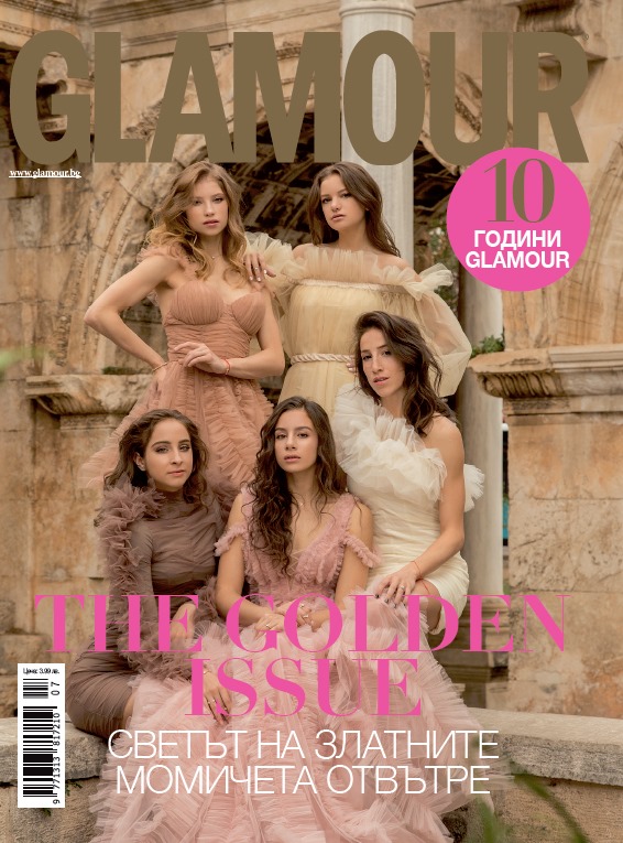 Момичетата от националния ансамъл по художествена гимнастика блестят на корицата на юбилейния златен брой на GLAMOUR. Симона Дянкова, Мадлен Радуканова, Лаура Траатс, Ерика Зафирова и Стефани Кирякова застанаха пред обектива на фотографа Костадин Кръстев-Коко за специална фотосесия по случай 10-ата годишнина на списанието в България. На кадрите, заснети в турския курорт Анталия, момичетата влизат в едно различно амплоа – това на модели, и позират с дрехи и аксесоари от последните колекции на няколко модни марки, както и със специално ушити за тях рокли на дизайнерката Евгения Борисова.