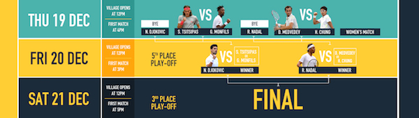 Станаха известни потенциалните съперници на суперзвездите Рафаел Надал и Новак Джокович на демонстративния турнир в Абу Даби този месец. Подгряващото за новия сезон състезание ще се проведе между 19 и 21 ноември. Световният №1 Надал ще играе на 1/2-финалите с победителя от двубоя между Даниил Медведев и Хьон Чон. Доскоршният лидер в световната ранглиста Джокович пък ще се изправи в спор за място на финала срещу шампиона от Заключителния турнир на ATP Стефанос Циципас или атрактивния Гаел Монфис. Полуфиналните мачове започват в 13,00 часа българско време, а финалът е от 15,00 ч.