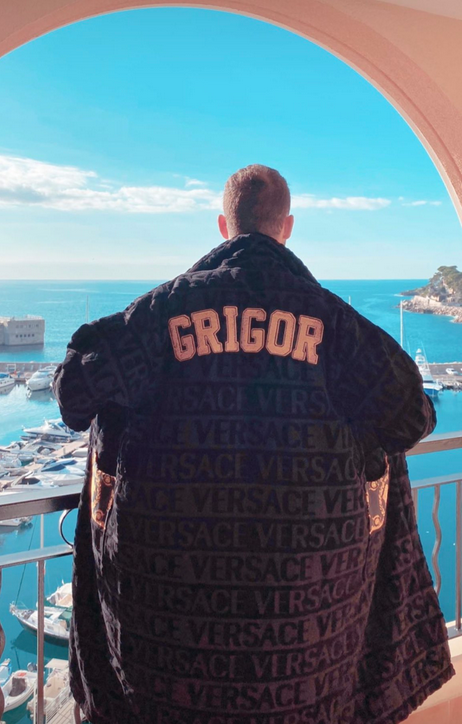 Коледа май подрани за Григор Димитров. Най-добрият български тенисист се похвали в социалните мрежи с подарък от Versace. Луксозната италианска марка изненада приятно Гришо с черен пухкав халат с негово име на гърба. Той позира с него на фона на Средиземно море.