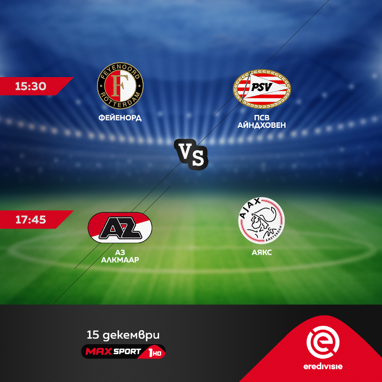 Неделният ден в холандската Ередивизи ще предложи на феновете два класически сблъсъка, които ще се излъчат пряко по MAX Sport 1.