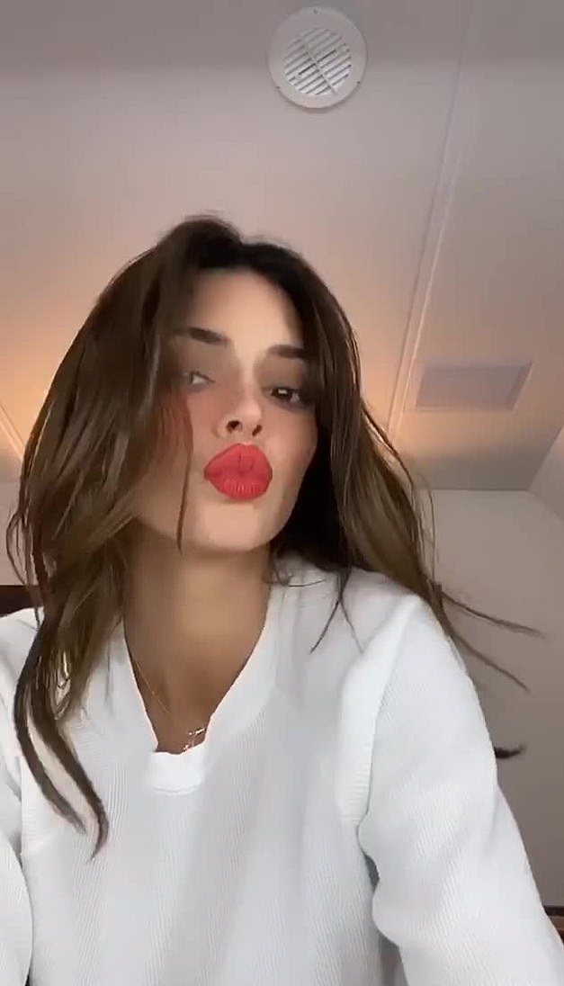Моделът на „Vogue” позира с бяла къса блуза, която загатваше за перфектните й форми, като подчерта сексаписла си с червено червило. Тя пусна небрежно косата си като на моменти се заиграше с нея пред камерата на своя телефон.