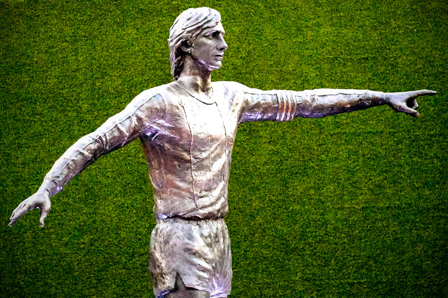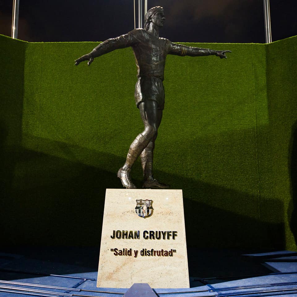 Творението е на холандката Кори Амерлан ван Нийкерк и е вдъхновено от периода на Кройф като капитан на Аякс. Бронзовата статуя посреща феновете на футбола със слогана “Излез и се забавлявай” (на испански език: “Salid y Disfrutad”).