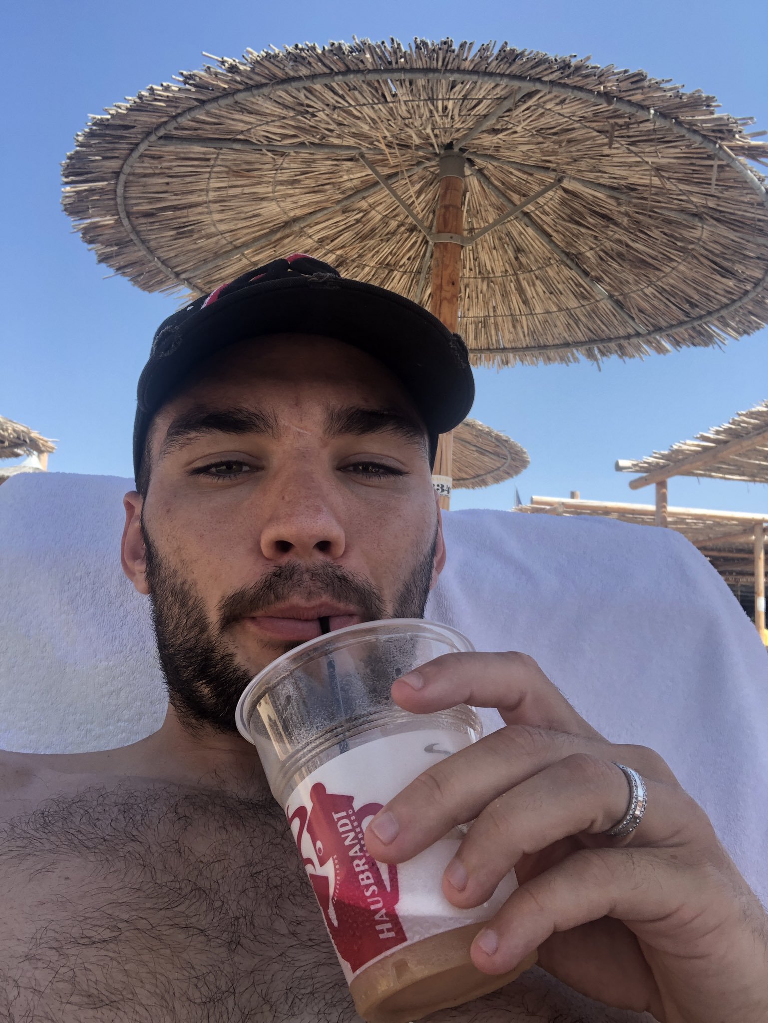 Шотландският стрелец публикува снимка в социалните мрежи, на която пие студена напитка и лежи на плажа.