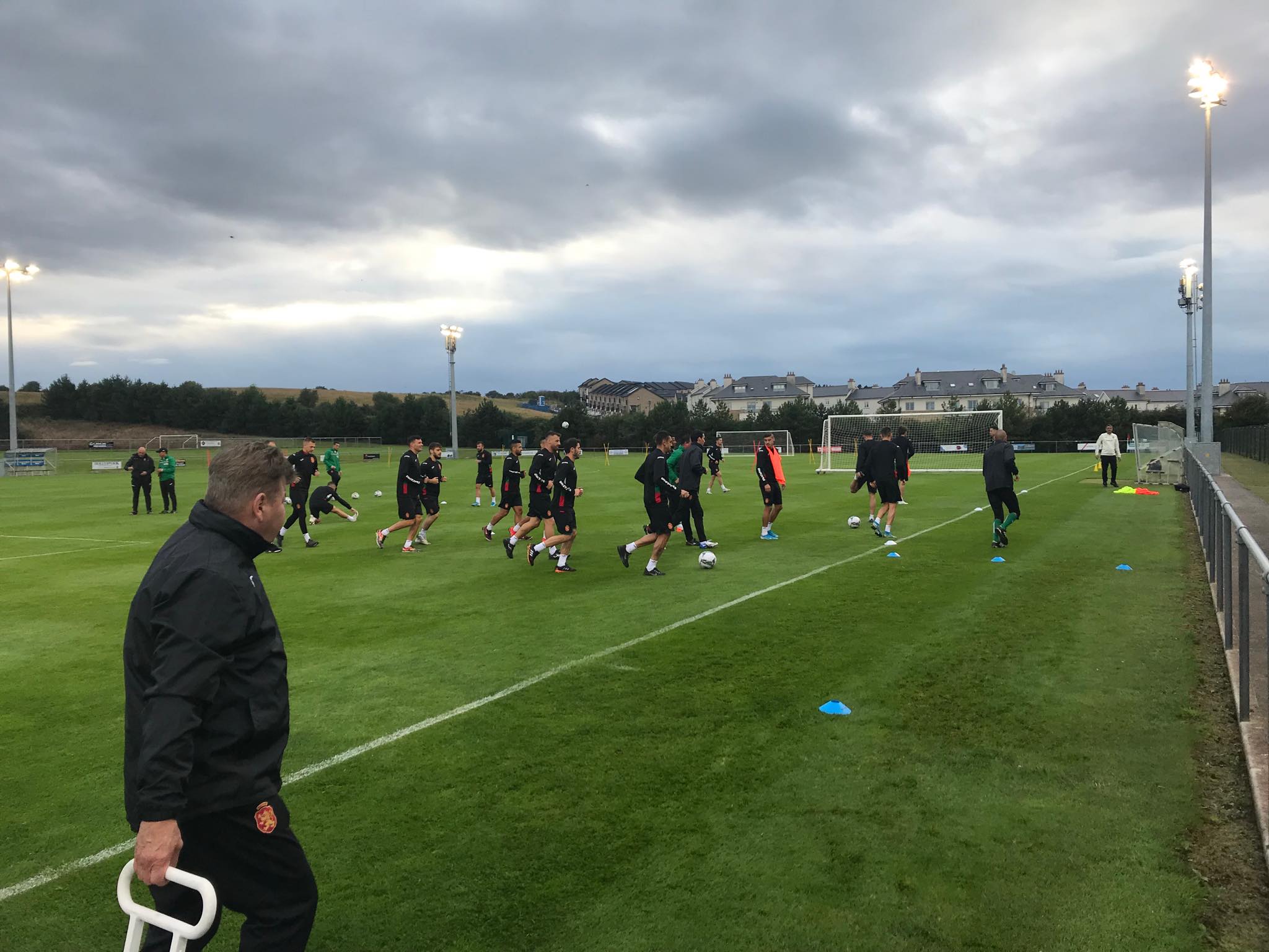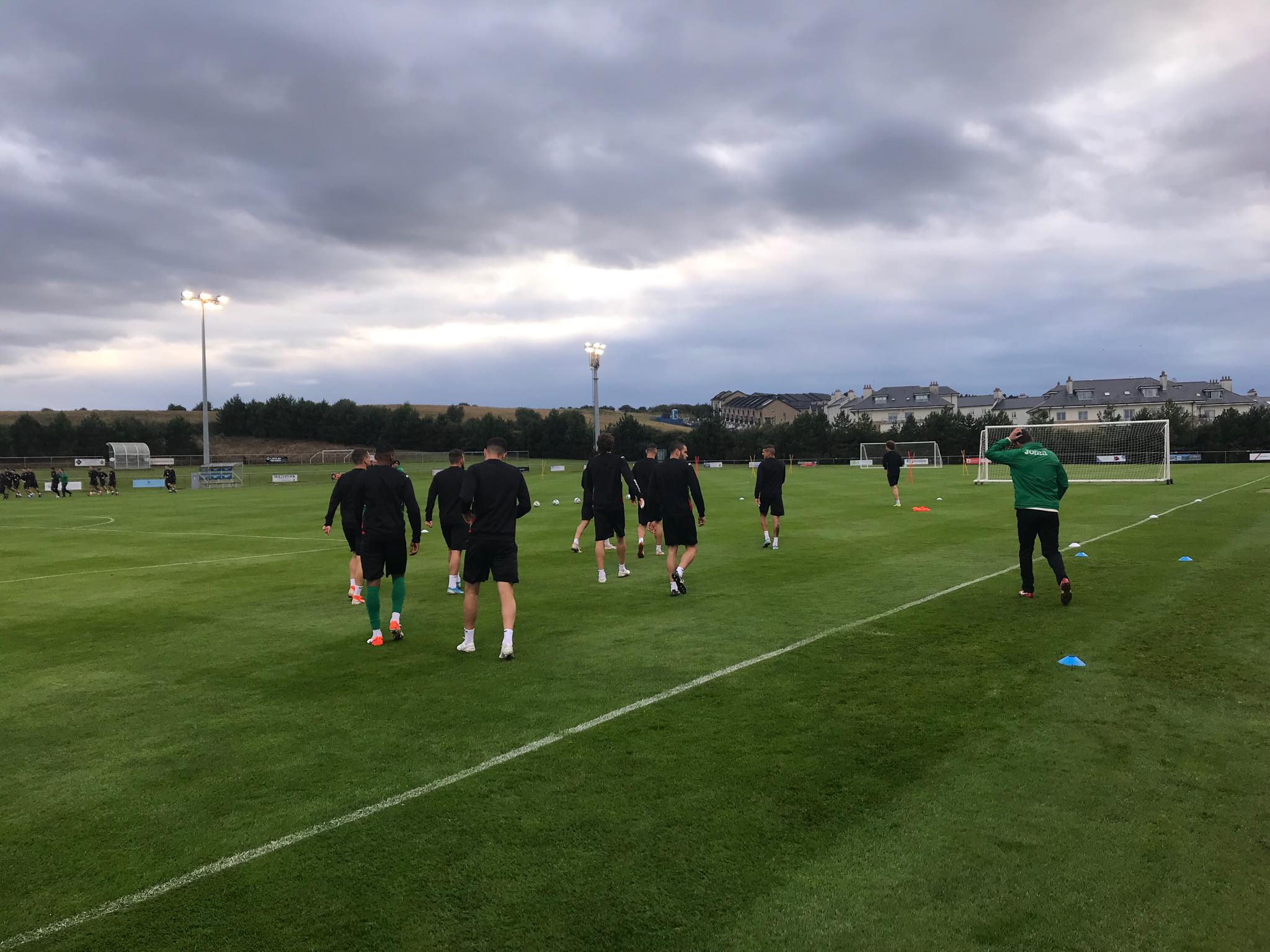 Националният отбор на България по футбол тренира в мрачна Ирландия преди контролата с домакините във вторник. Всички 11 титуляри на Красимир Балъков от европейската квалификация с Англия, загубена с 0:4 от нашите, провеждат възстановяване. Наред с това оснаталите национали тренират на пълни обороти и в добро настроение. Заниманието на "лъвовете" се провежда на спортната база на ирландския Малахайд Юнайтед - "Ганон Парк".