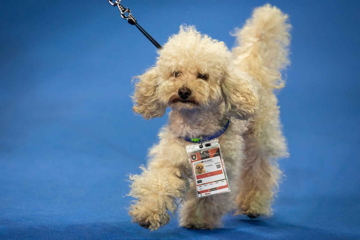 Кой е той? Пуделът Слеш е собственост на Даниа Спинози - приятелката на помощник треньора на Словения Алфредо Мартиоти.
