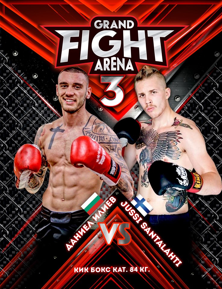 Финландски боец е следващото предизвикателство пред българската кикбокс звезда Даниел Илиев. Неговото име е Юси Санталахти. Двамата ще се изправят в една от двете главни битки на третото издание на бойния турнир GRAND FIFHT ARENA на 5-ти октомври в зала ДЗУ в Стара Загора. Мачът е по правилата на кикбокса, стил К1, в категория до 84 килограма.