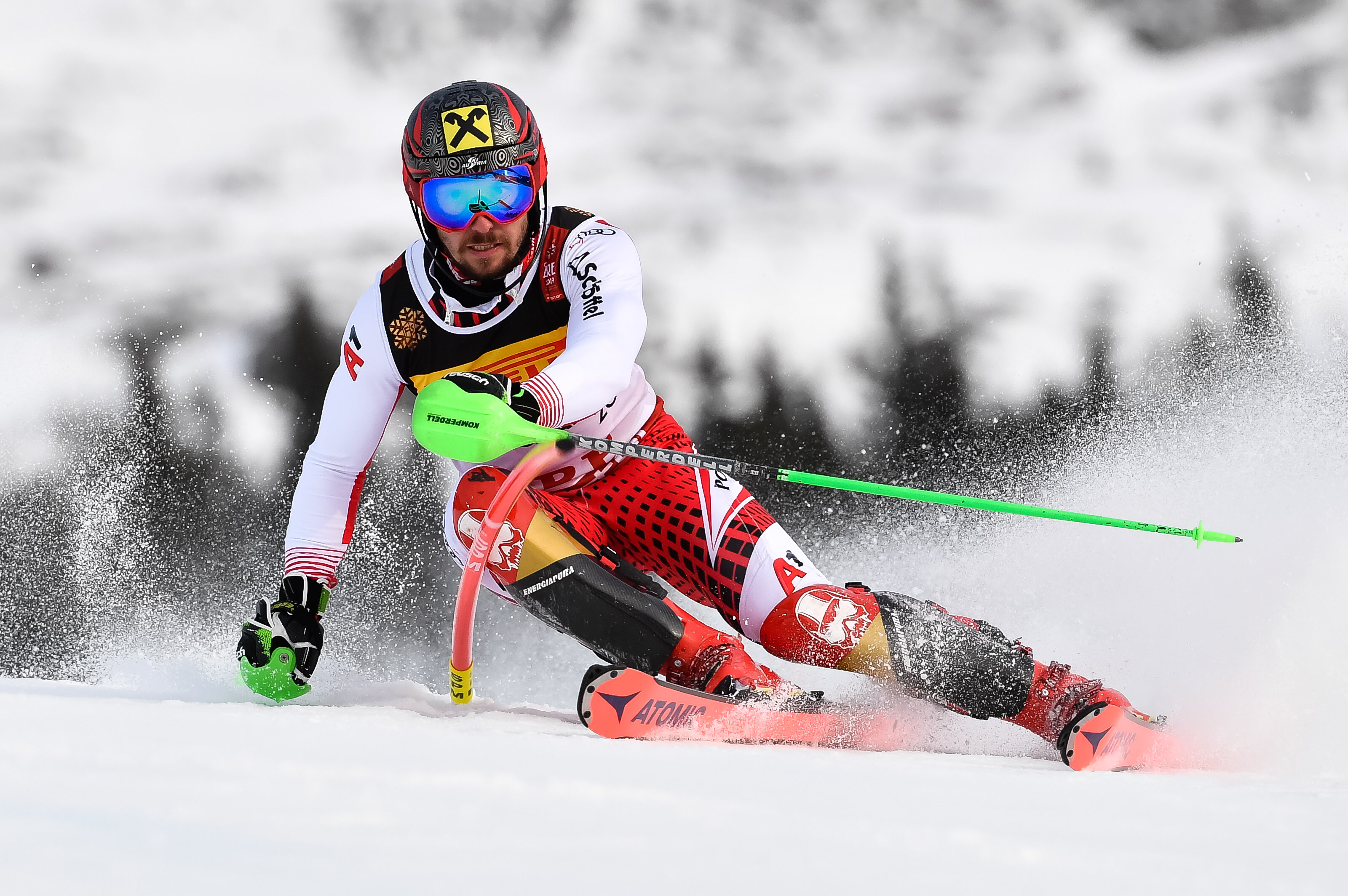 Водач след първия манш е австриецът Хиршер, който даде време от 1:00.60 минути. Втори на 0.56 секунди е французинът Алекси Пинтюро, а трети на 1.22 секунди е други австриец - Марко Шварц.