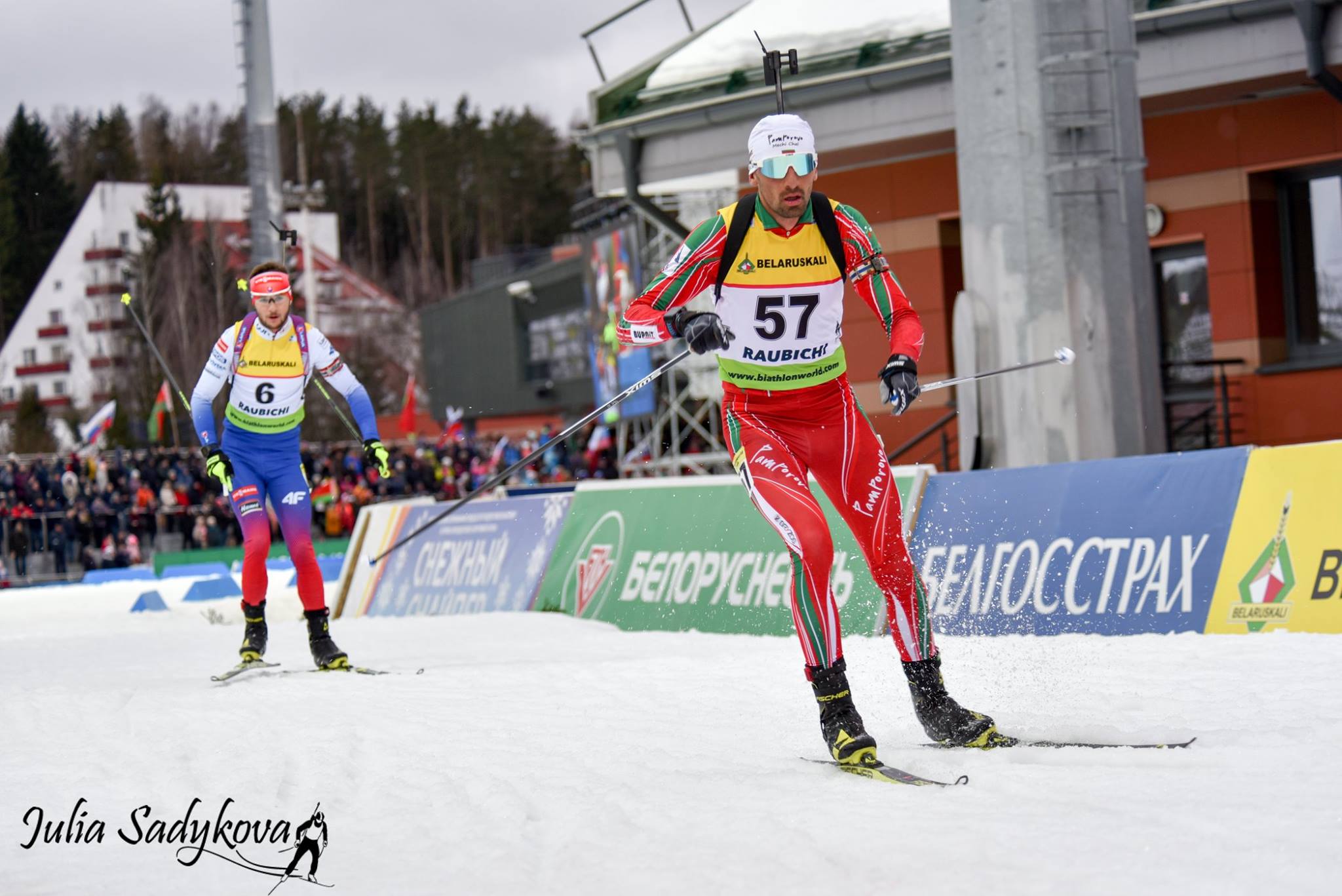 Антон Синапов завърши 15-и с една грешка и пасив от 58.6 секунди, Красимир Анев е 24-и също с една пропусната мишена и изоставане от 1:16.3 минута, а Димитър Герджиков е 30-и с една грешка и на 1:26.7 минута зад победителя.
