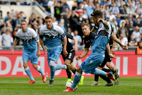 Лацио поведе в резултата в 22-ата минута с гол на Адам Марушич. Огромна заслуга за попадението има Сергей Милинкович-Савич. Сърбинът пусна чудесно извеждащо подаване към своя съотборник, коeто свари неподготвена защитата на гостите, а Марушич стреля в ъгъла на стража Луиджи Сепе и отбеляза. Три минути по-късно “орлите” получиха правото да изпълнят 11-метров наказателен удар за игра с ръка на Симоне Якопони в наказателното поле.