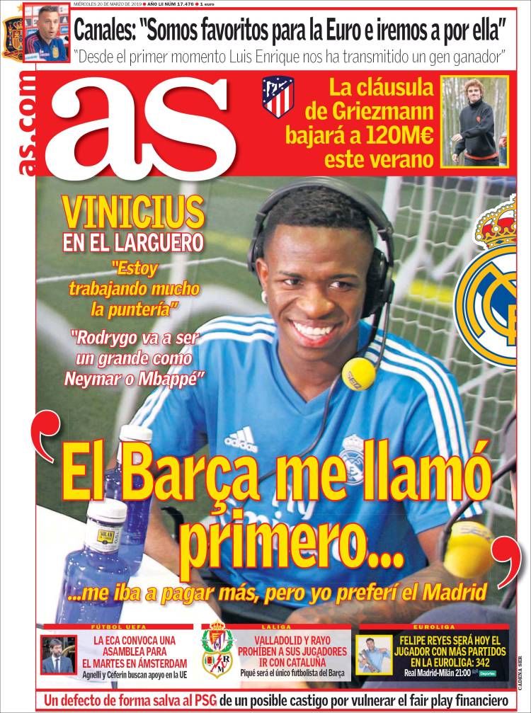 Младият талант на Реал Мадрид Винисиус Жуниор разкри, че от Барселона са имали сериозен интерес към него, но той е предпочел кралския клуб. “Барса плащаше повече, но избрах Реал Мадрид заради по-добрия проект. Марсело говори с мен, Каземиро също. Много ми помогнаха”, заяви 18-годишният бразилец в интервю за предаването El Larguero на Cadena SER.
