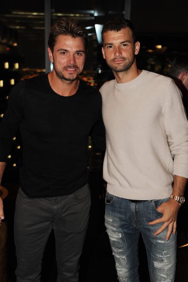 Григор Димитров се подготвя за завърщането си на корта на турнира от серията “Мастърс” в Маями тази седмица. Преди началото на престижната надпревара най-добрият ни тенисист остави за малко ракетата и бе част от традиционното парти на играчите. На една от снимките хасковлията позира до швейцарския си колега и приятел Стан Вавринка, а на друго фото е заобиколен от млади дами.