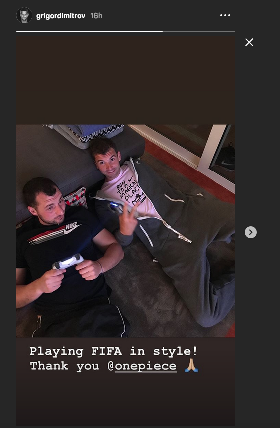 Преди това в “Instagram Story” Григор си публикува снимка как лежи на пода и играе FIFA с един от физиотерапевтите си и дългогодишен член на щаба Алгис Христов.