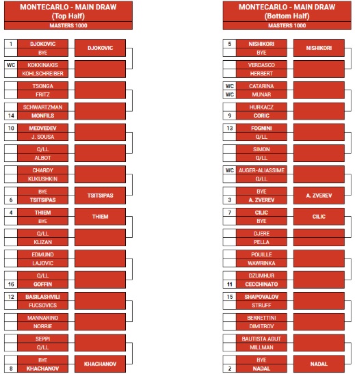 Единственият българин в тенис елита Григор Димитров ще открие сезона на клей с двубой срещу Матео Беретини в първия кръг от "Мастърс"-а в Монте Карло, който започва на 14 април. Димитров е в половината на схемата на Краля на клея Рафаел Надал, който е 11-кратен шампион в Княжеството и двамата потенциално могат да се срещнат в трети кръг.