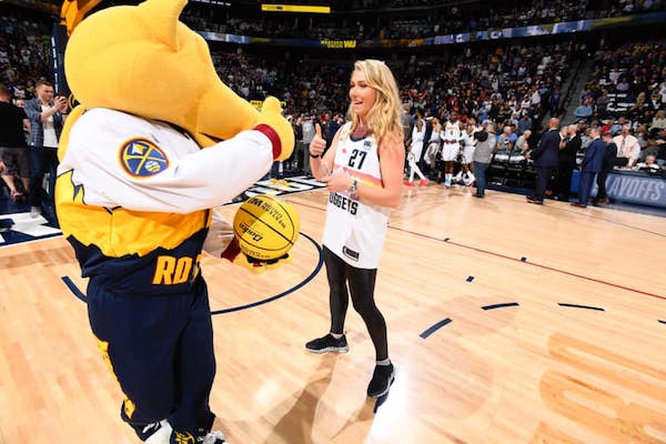 Суперзвездата в ски-алпийските дисциплини Микаела Шифрин бе специален гост на мач №2 от първия кръг в плейофите в Западната конференция на НБА между Денвър Нъгетс и Сан Антонио Спърс. 24-годишната Шифрин даде началото на двубоя и явно донесе късмет на “Златните буци”, които надвиха “Шпорите” от Сан Антонио със