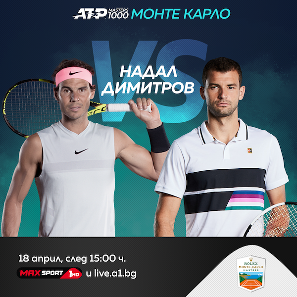 Българската звезда в световния тенис Григор Димитров излиза за мача си от третия кръг на ATP Masters 1000 турнира в Монте Карло срещу Рафаел Надал днес следобед. Двубоят между двамата е трети в програмата на Централния корт в Княжеството, като ще започне най-рано в 15:00 часа и ще се излъчва пряко по MAX Sport 1, както и като на платформата live.a1.bg.