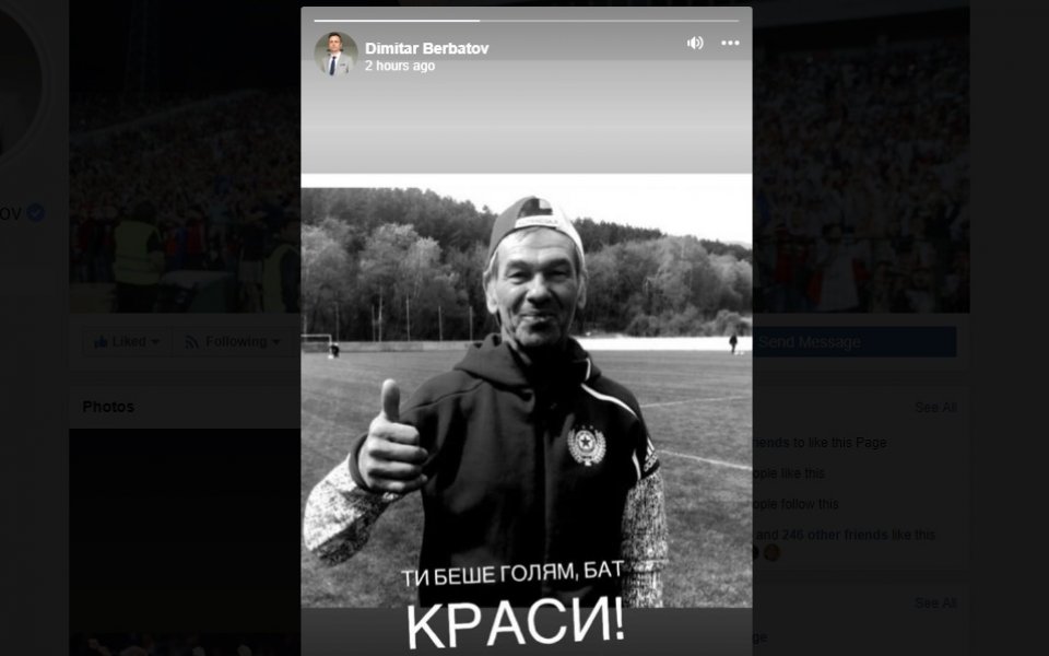 „Ти беше голям, бат Краси! Почивай в мир”, написа Бербатов на фона на снимка с лика на Краси Безински.
