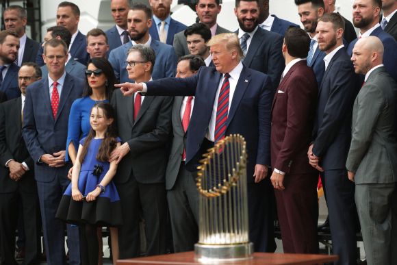 Самият Тръмп не засегна по никакъв начин темата за отсъстващите звезди, а само похвали отбора за четвъртата му шампионска титла през XXI век – рекорд в МЛБ. "Вие буквално бяхте непобедими. Гледах ви", каза президентът, популярен като фен на вечния враг на Бостън – Ню Йорк Янкис. Държавният глава прие с усмивка подарената му фланелка на Ред Сокс с №18 и трябваше да преглътне няколко шеги по адрес на "янките".