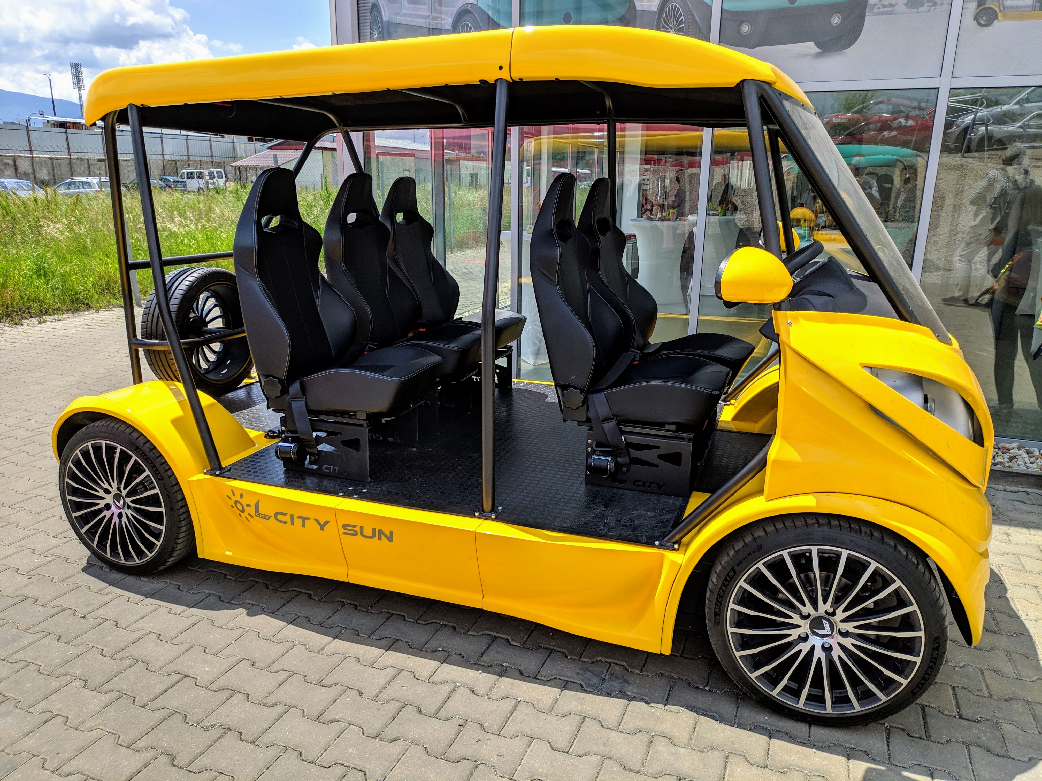 L-City Sun - Хомологация: М1/N1; електромотор: 15 kW; пробег: мин 100 км - макс – 300 км; батерии: 11 kW/h – 30 kw/h в зависимост от нуждите на клиента; открита до 8 места - минимална полезна маса (общо тегло с товар) 2550 кг; товарен вариант – кабина със затварящи се врати и повдигната товарна платформа;