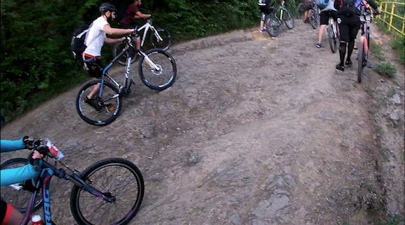 Трасето за мен е трудно още от самото начало. Това качване е бавно, а по пътеките все още сме много велосипедисти. Задминавам баща, който е довел малкия си син – момче на около 14-15 години. Поздравявам ги за куража и продължавам напред. Забелязах, че минавам между големи компании приятели, които дружно участват и не спират да се шегуват – аматьори, ако знаете какво ви чака. В голямата колона виждам и много дами, които честно да си призная, ми бе трудно да догоня.