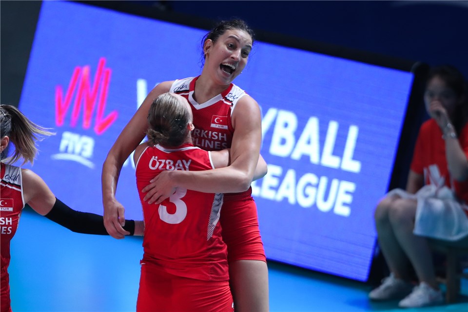 Турция победи лесно Италия с 3:0 (25:21, 25:15, 25:15) и се класира на първо място в група "А" на финалния турнира за Лигата на нациите по волейбол при жените в Нанкин, Китай.