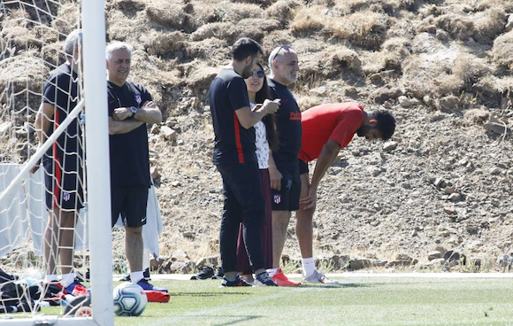 Нападателят на Атлетико Мадрид Диего Коща, който е спряган за трансфер в Уулвърхамптън, не успя да издържи до края на наторванията на изминалата тренировка на испанците в близкото до Мадрид градче Лос Анджелис де Сан Рафаел. 30-годишният играч се надпреварваше с Алваро Мората в беговите упражнения по двойки, като го победи на два пъти по маршрути с наклон.