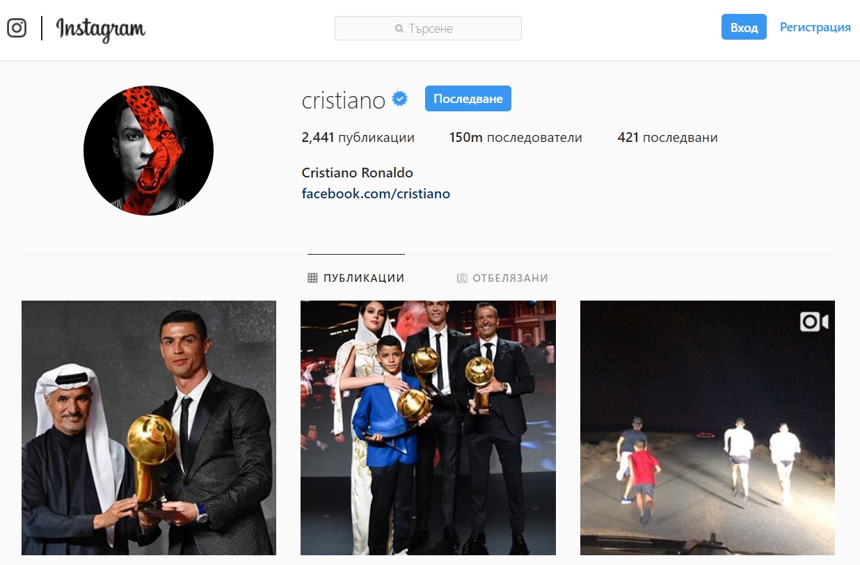 Футболната звезда Кристиано Роналдо може да се похвали с поредно постижение. Португалецът премина границата от 150 милиона фена в социалната мрежа Инстаграм и е единственият, успял да го стори.