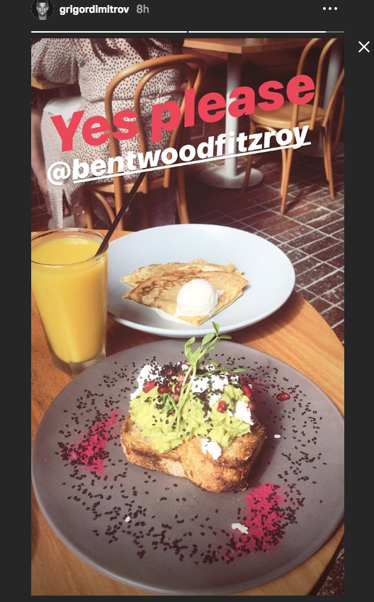 Григор Димитров се радва на специално внимание в Мелбърн. Най-добрият български тенисист е добре разпознаваем в Австралия и това показва снимка, която той публикува в “социалните мрежи”. Той е снимал капучиното си, което е с неговите инициали.
