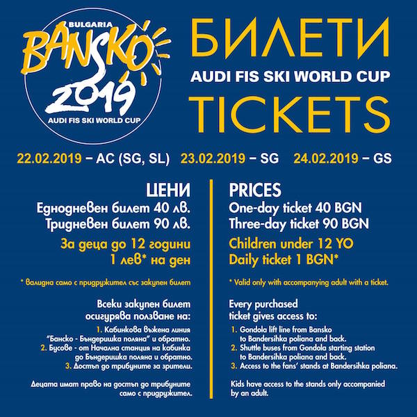 От 12-и януари ще са в продажба билетите за Световната купа по ски-алпийски дисциплини в Банско (22-24 февруари). Пропуските могат да бъдат закупени на касите в Банско и в магазин МаксСпорт в София.