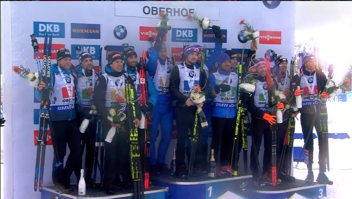 На последната стрелба Логинов пропусна две мишени, но успя да се справи с два допълнителни патрона, а Мартен Фуркад стреля безпогрешно, но не успя да навакса изоставането на френския отбор по последната обиколка.