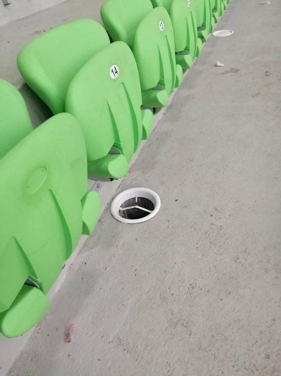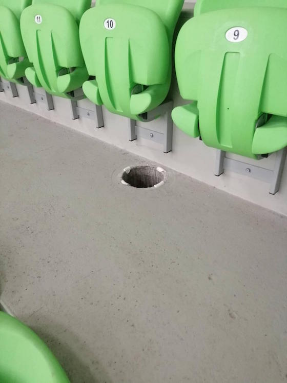 На сайта има и снимки, които показват изкъртени въздуховоди от залата, с един от които бе ударен и полицейски служител.