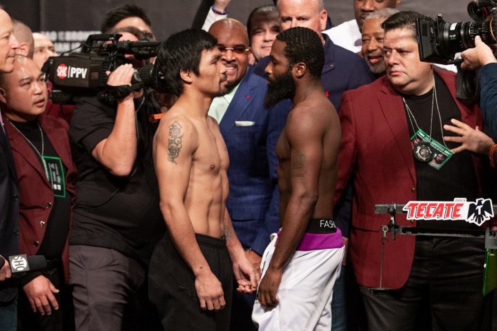 12-рундовата битка ще бъде за титлата на Световната боксова асоциация в полусредна категория. Поясът беше спечелен от Пакяо в предишния му мач с едно от най-впечатляващите представяния за филипинеца през последните години. Той нокаутира в седмия рунд Лукас Матисе, като преди това го свали на три пъти в нокдаун.