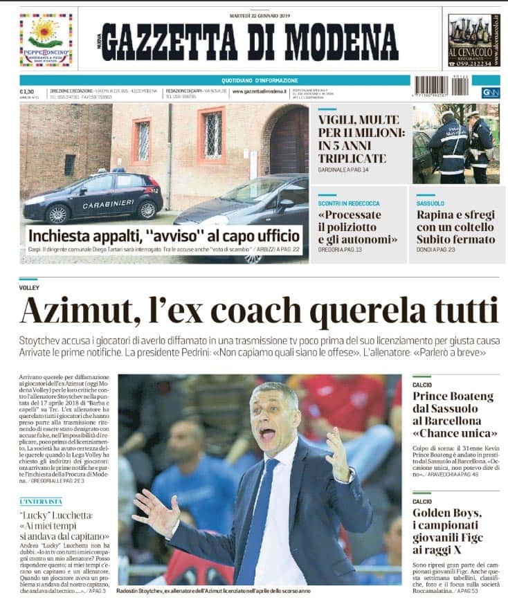 Радостин Стойчев ще заведе съдебно дело срещу волейболистите на Азимут (Модена), които по безпрецедентен начин го атакуваха публично и поискаха напускането му.