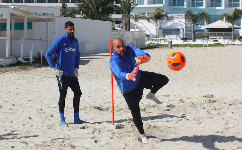 Най-младият от вратарите Петър Иванов също тренира на плажа, но много по-леко, тъй като има лек проблем след вчерашните занимания на отбора. Именно поради това Иванков не иска да рискува здравето му.