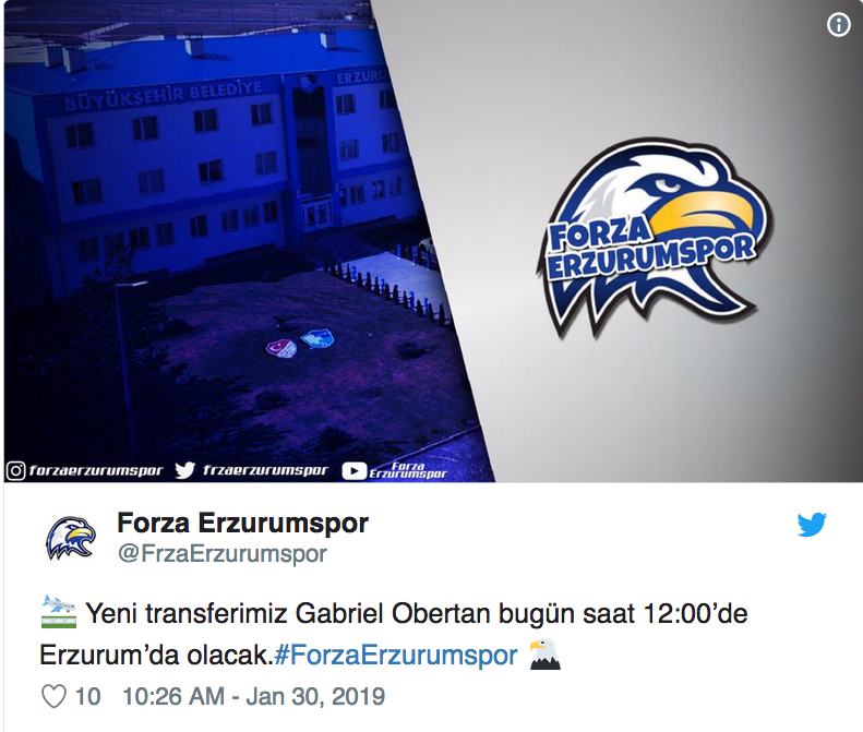 Габриел Обертан ще пристигне в Ерзурум в 12:00 часа местно време, което означава 11:00 българско. Французинът е чакан, за да премине медицински прегледи и да подпише договор с турския тим.