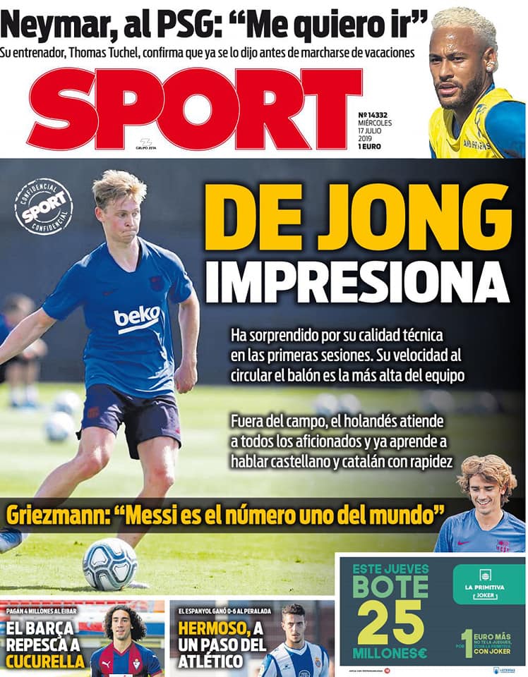 “Гризман е много добър, но го познаваме. Това, което прави Де Йонг, е изумително”, започва статията си изданието, цитирайки думи от треньорския щаб.